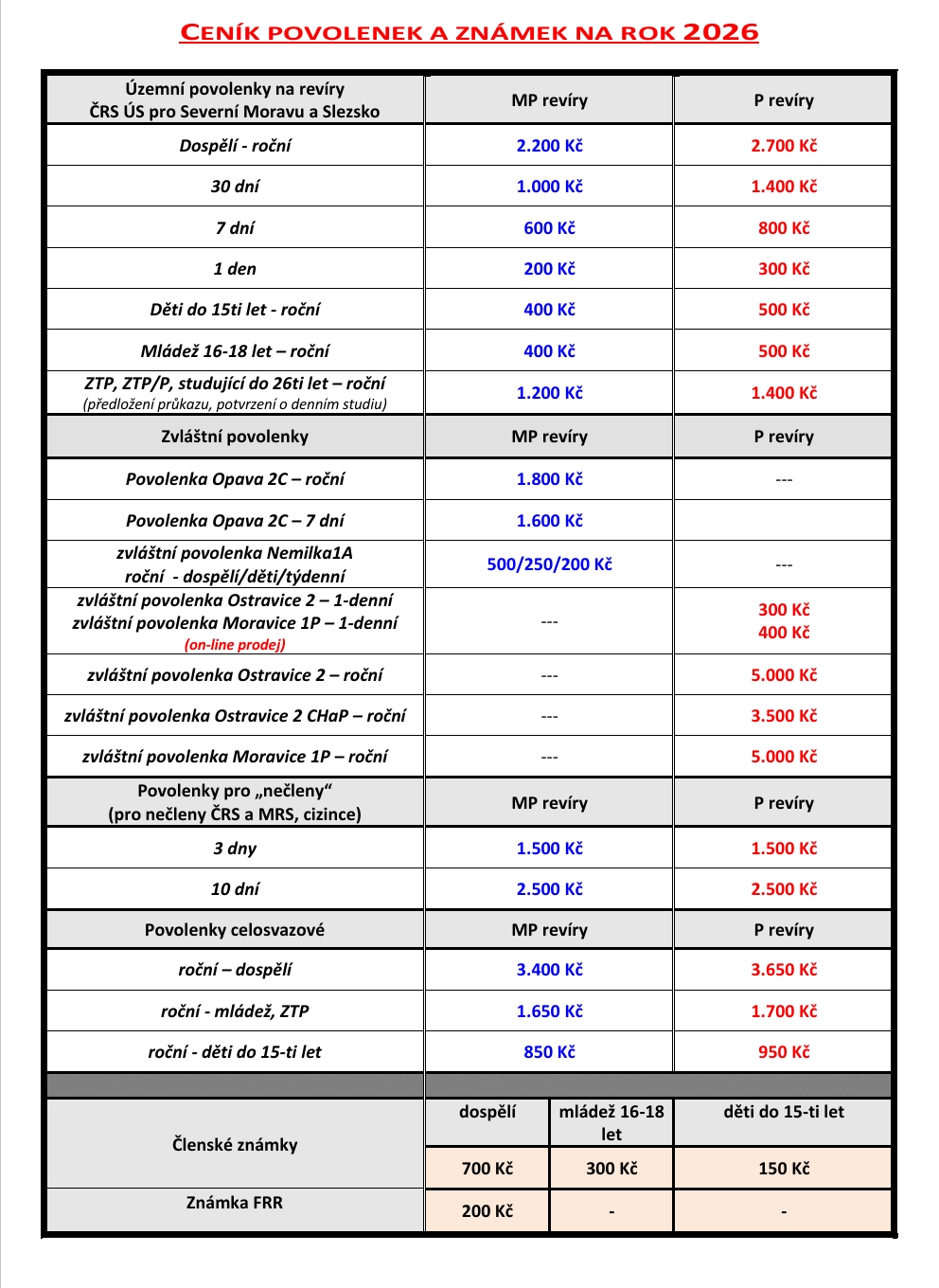 Při pozdním vrácení sumáře (povolenky r. 2025) je k ceně nové povolenky automaticky započítán příplatek 500,- Kč u dospělých, 300,- Kč mládež (platí v celém ČRS).